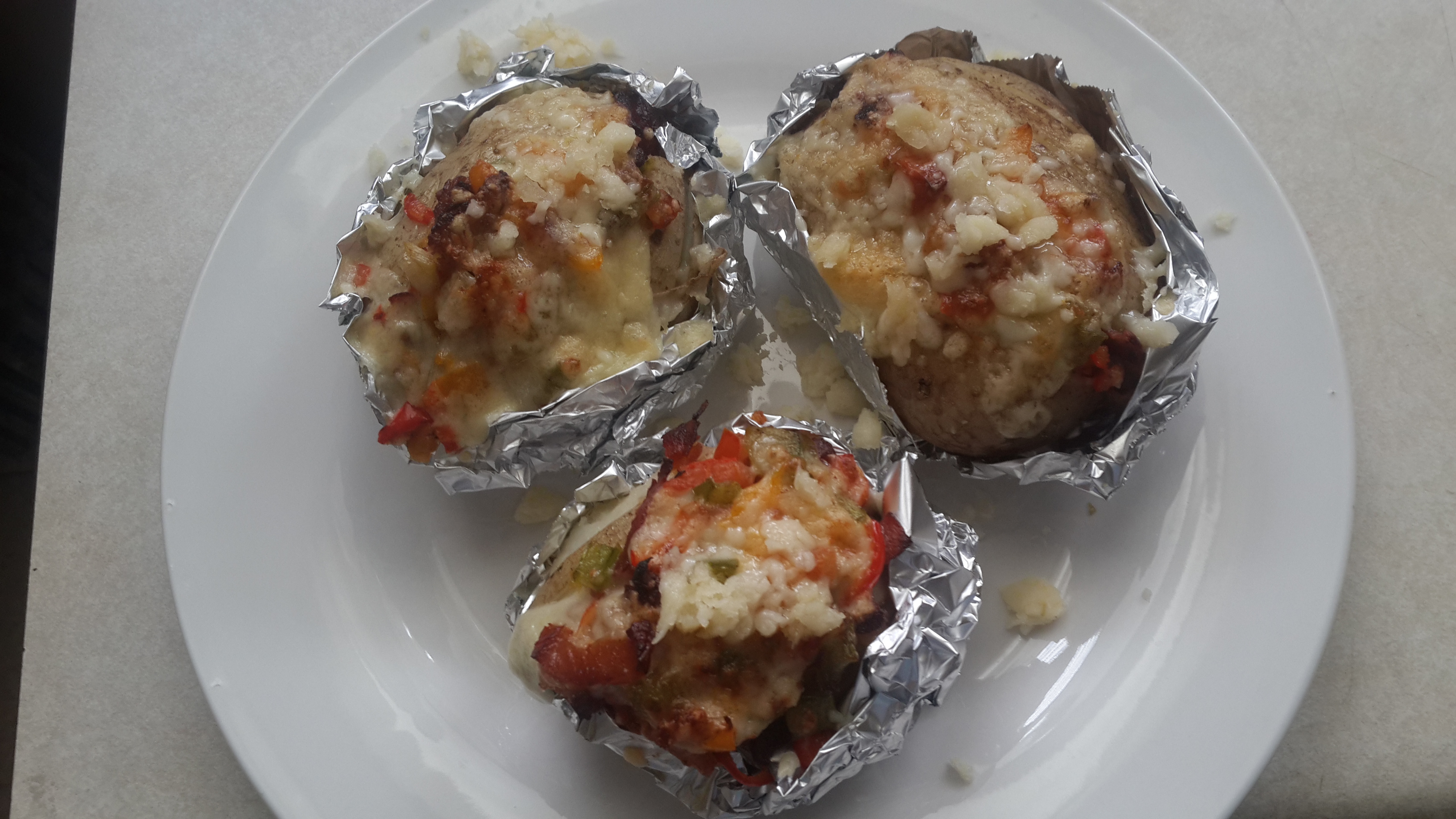 - I wrapped my potatoes in foil before stuffing because I boiled them too long; the foil kept them together.